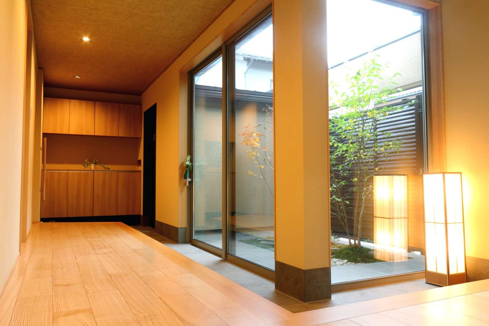 高気密・高断熱の住宅は、外の気温や湿度の影響を受けにくく、一年を通して室内の温湿度環境が安定しています。まるで、美術品を保管する収蔵庫のような環境です。このように安定した環境下に置かれた無垢材は、急激な伸縮を強いられることがなく、非常に落ち着いた状態を保つことができます。