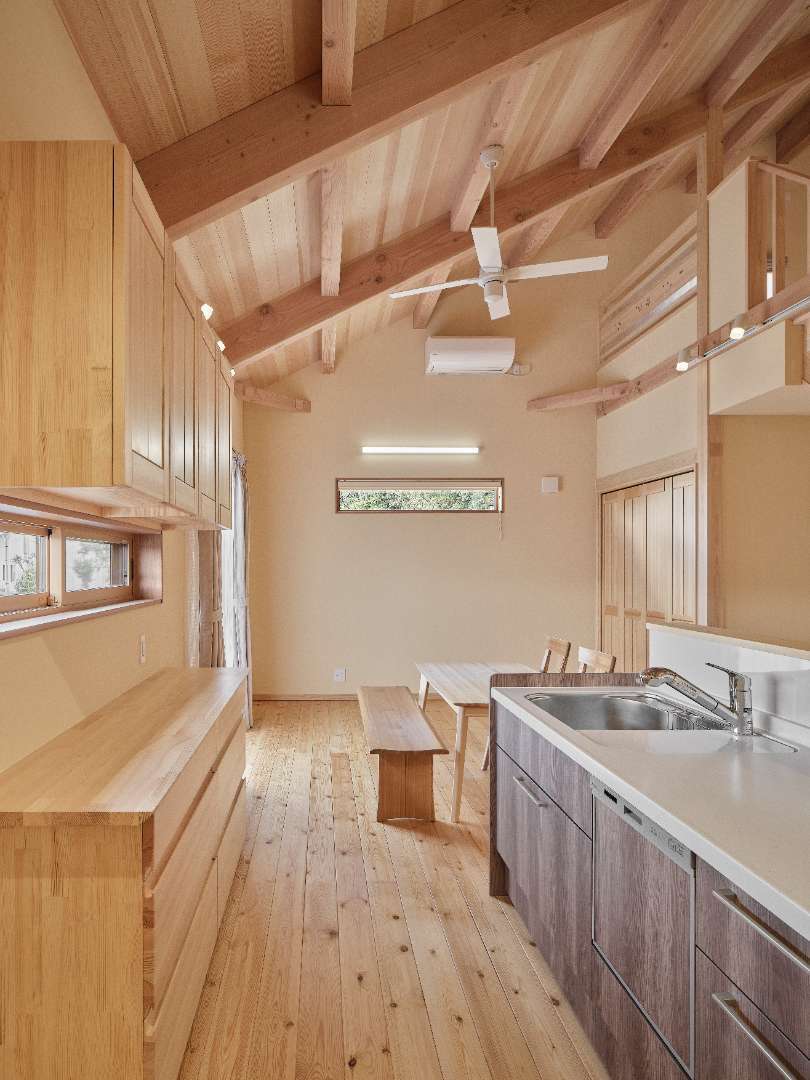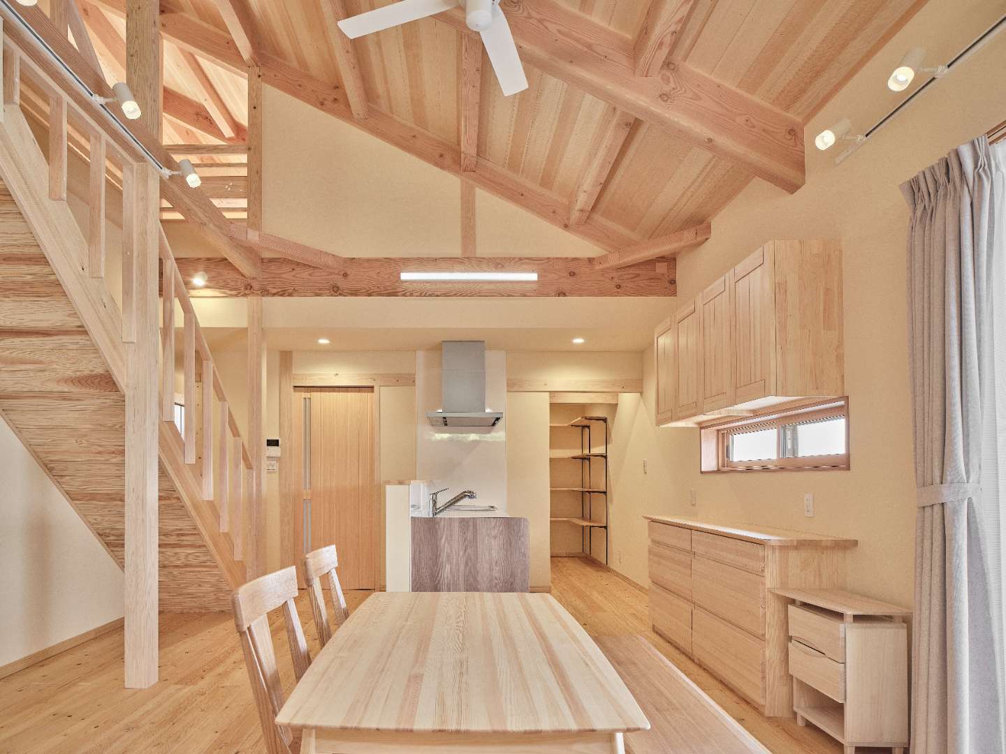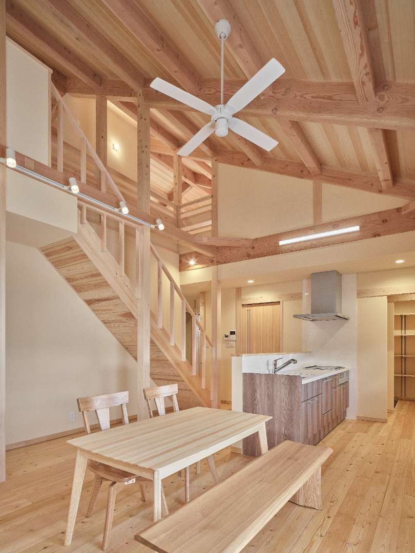 New 戸建て 注文住宅 勝央町 本物の無垢にこだわった『木のひらや』 木のぬくもりと心地よさを感じる感動の家。遮熱+断熱でエアコン一台で家中快適住まい 場所 岡山県勝田郡勝央町 1 / 1 前の施工事例 戸建て 真庭市 開放的なLDKの平屋